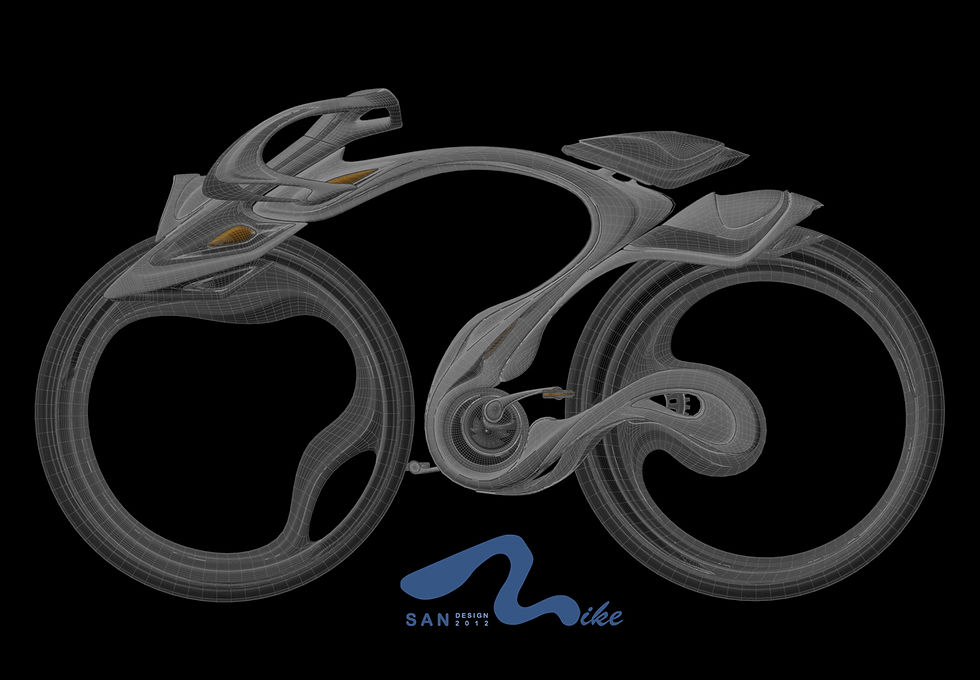 Design language of the bicycle is figured by natural form. Simplified body form which component with smooth shaped elements. The essence of this bicycle design is to create a sexy curve. It presents as soft as water and shows the strength and beauty at all different angles.
