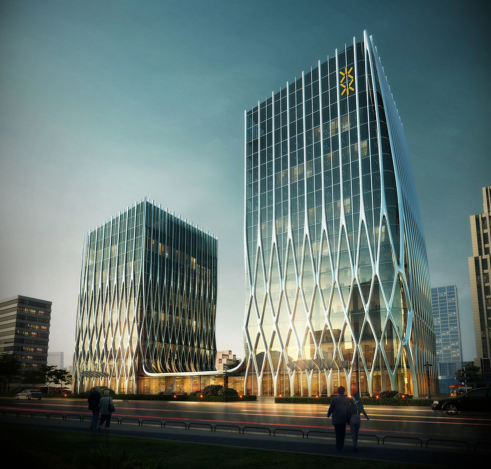 The design concept of Xinyang Branch office comes from the representation of the beauty of agricultural product in north of China - The natural form of the full grain of wheat. By such representation the architectural form shows its metaphoric meaning of a joyful mood of harvest Based on contemporary architectural language, the culture of Chinese agriculture is well embodied in the form of the office, in order to portrait entrepreneur's character. The design is ambitious to not only be adaptive in the contemporary urban context, but also reveal an unique elegance of architecture.